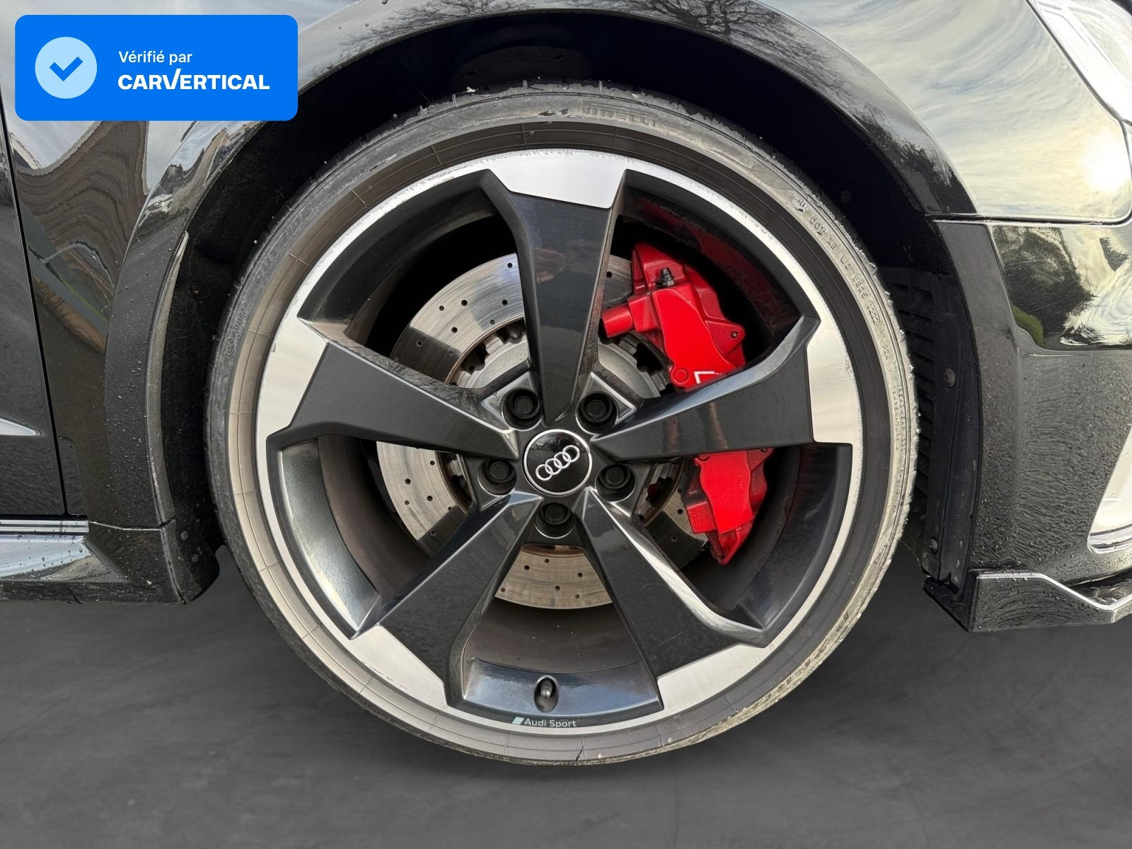 Becquet AR RS3 laqué dans la couleur de la carrosserie, au niveau du pavillon avec inserts aérodynamiques latéraux noir brillant